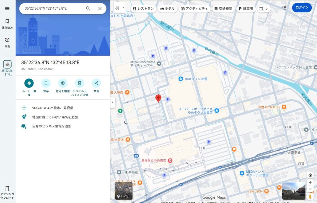 Google Maps Link の箇所のURLをブラウザで開けば、GoogleMap上で確認できます。
