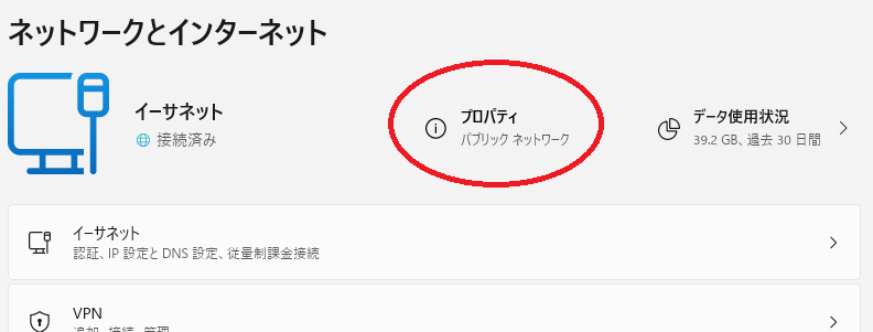 表示された内容で、”プロパティ”を確認します。